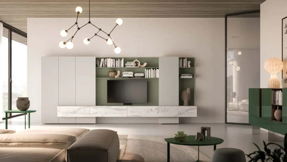 La zona giorno si compone di molteplici mobili e oggetti accessori capaci di completare lo spazio sfruttando bene ogni angolo; tra questi non può mancare una parete attrezzata come il modello Yad 70 di Orme presente in foto, ideale per dare vita a un soggiorno pratico e dinamico.