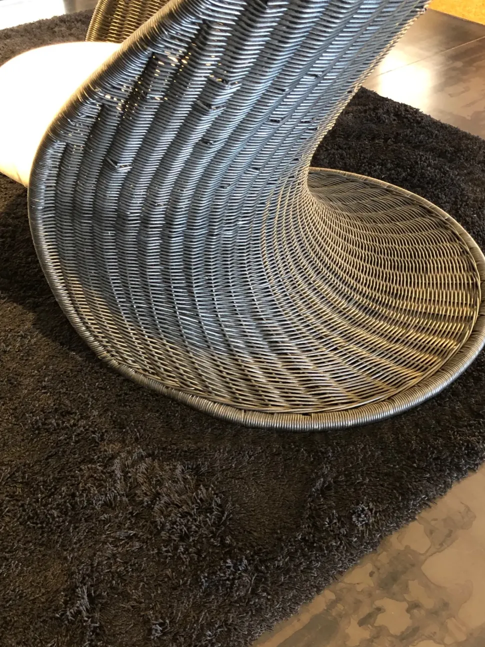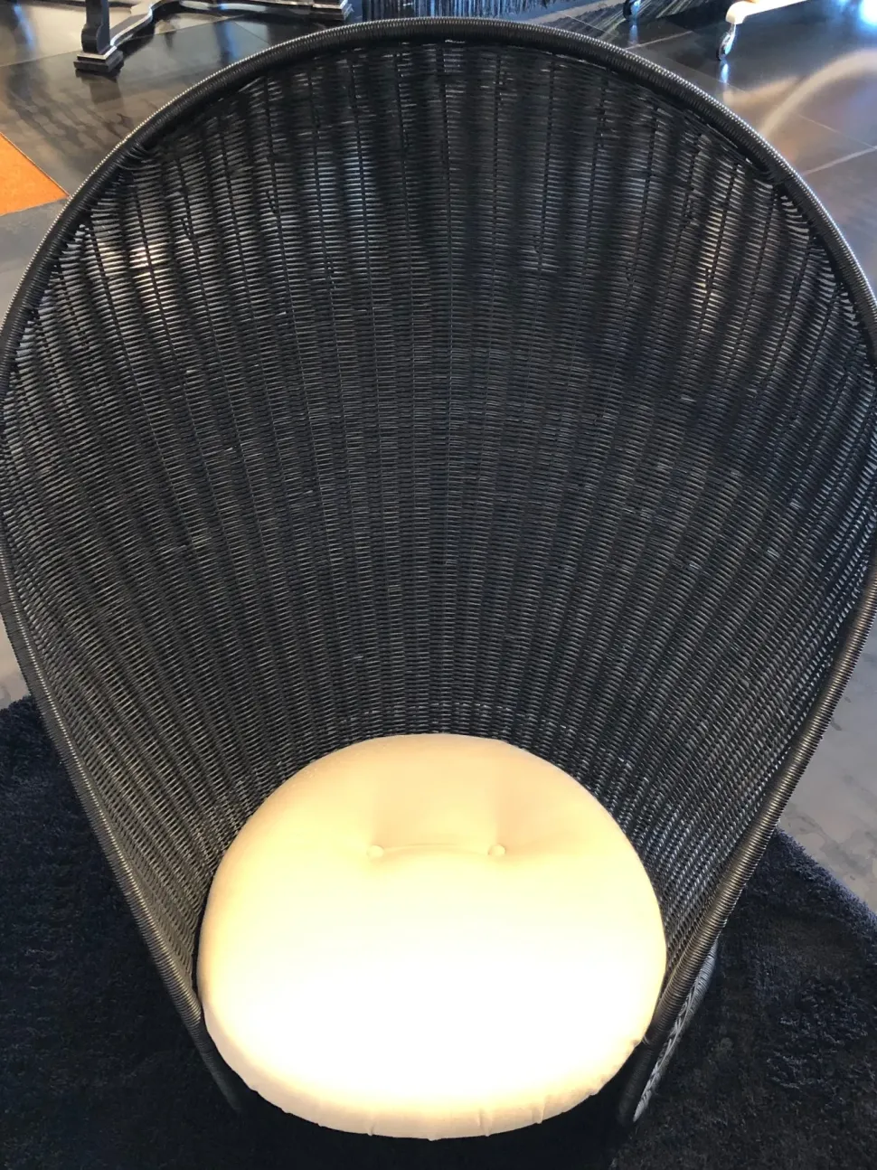 Realizzata in RATTAN MIDOLLINO Tinto nero . Forma ispirata a una Foglia dalla quale ha preso il nome.