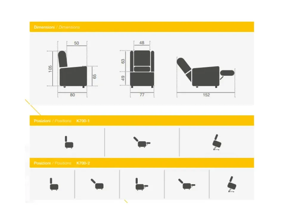 - Il modello K700-2 qui presente appartiene alla nostra serie di poltrone che vanno fino a 100 cm in lunghezza, risultando così ideali per rendere operativo e pratico uno spazio di svariate misure e conformazioni.