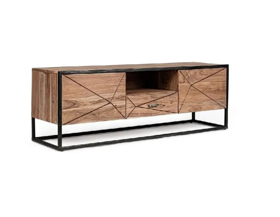 Porta tv Egon, mobile porta tv s ante e 1 cassetto Egon in stile contemporaneo ed essenziale. Struttura in legno massello di acacia con finitura acrilica protettiva. Mobile tv composto da 2 ante, 1 cassetto e un vano a giorno, offre un ampio spazio cui riporre oggetti ed arredi di uso quotidiano. Maniglie in acciaio.