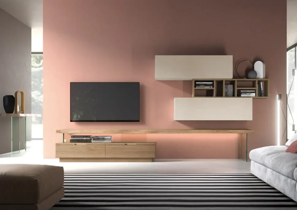 Se sei un appassionato di composizioni d’arredo in stile moderne, opta per la parete attrezzata nell’immagine e potrai arricchire un living dinamico e operativo seguendo una certa linea stilistica.