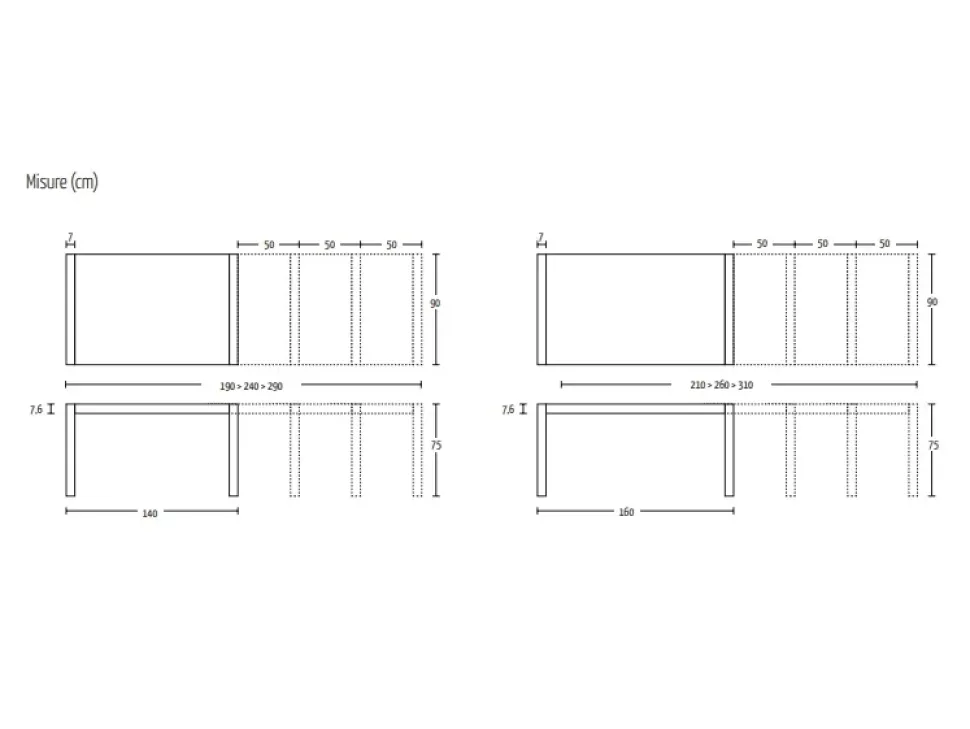 - Tipologia: rettangolari allungabili