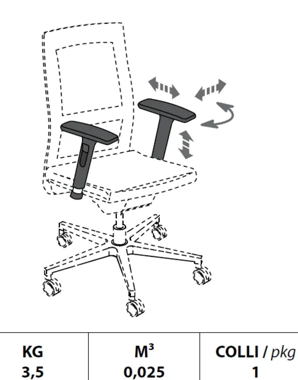 Bracciolo regolabile in altezza, profondità e rotazione,
