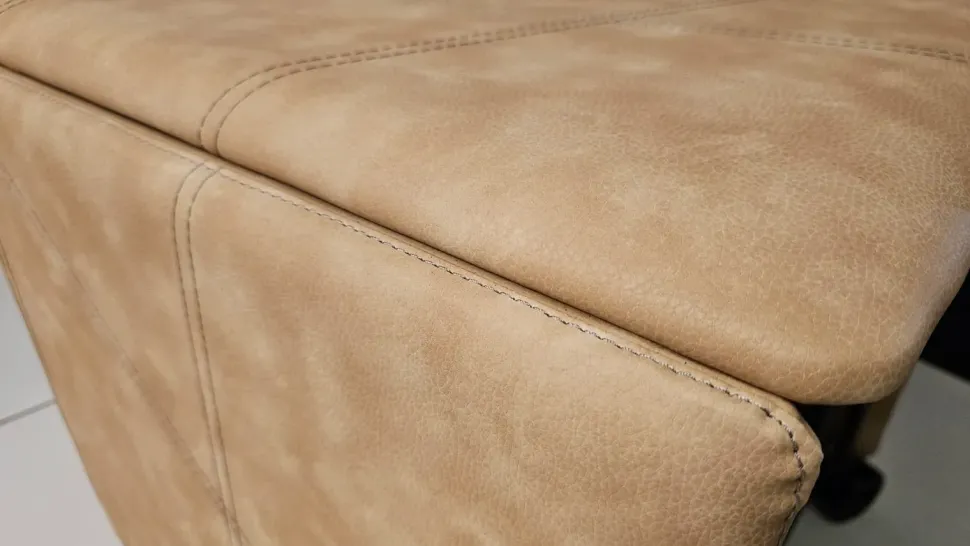 Pouff Cubix rivestito in ecopelle Nabuk Lince, filo grigio scuro con struttura in metallo bronzo, contenente n.4 sedie pieghevoli con seduta e poggia schiena imbottiti, n.5 sedute complessive, ruote per movimentarlo facilmente quando è chiuso