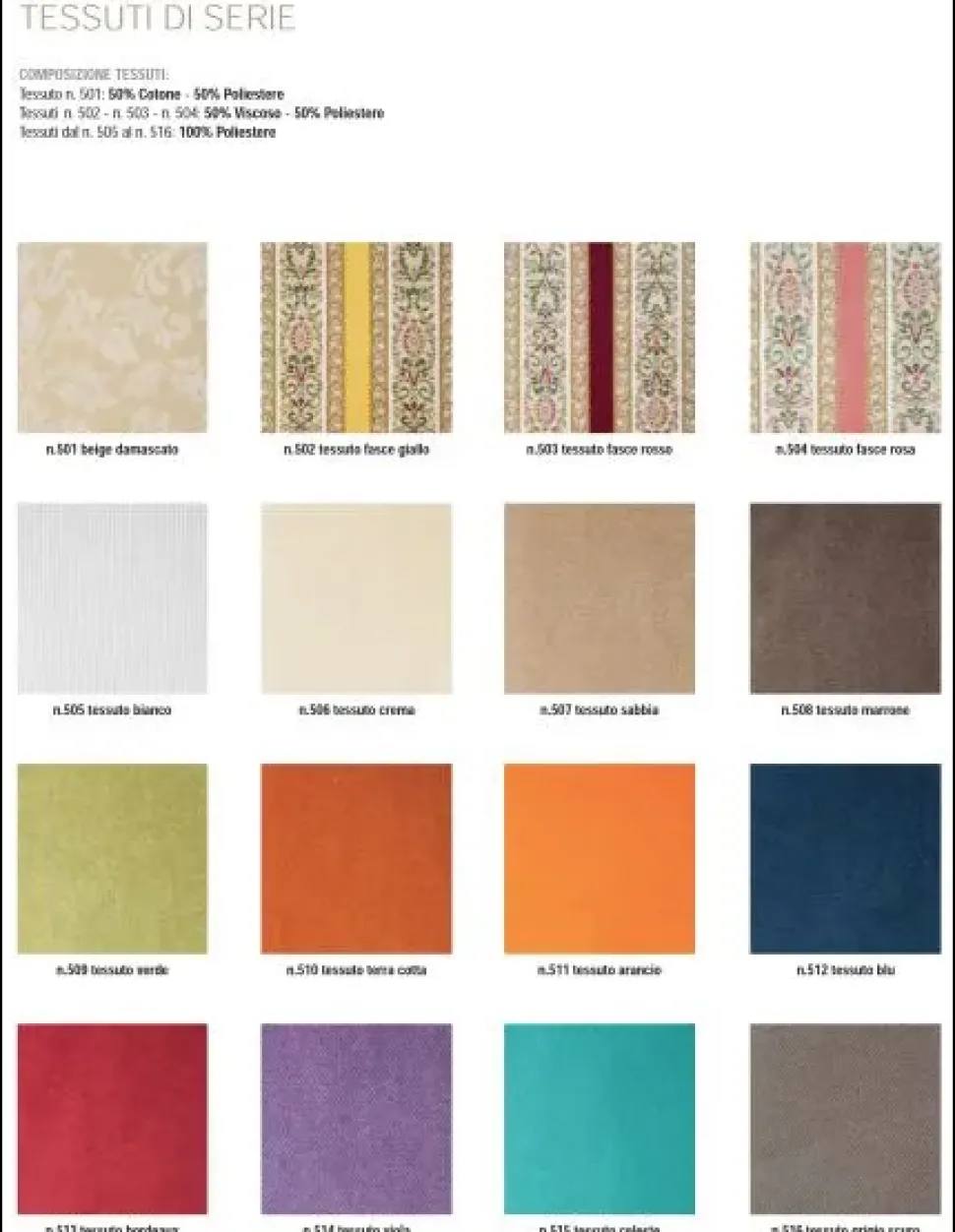 SEDUTA: TESSUTI / SERIE COLORI: DAL N.501 AL N.516