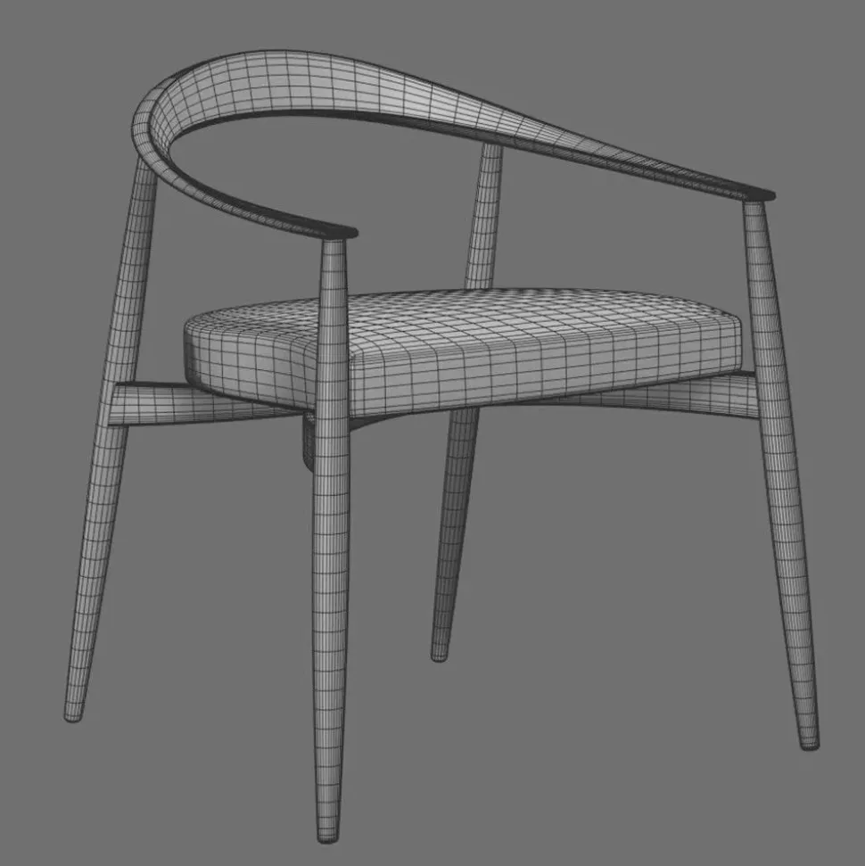 Gli schienali e i braccioli sono realizzati in un unico pezzo di legno massello con finitura rovere caffè. La forma parte dall’asse verticale dello schienale per raggiungere l’asse orizzontale dei braccioli grazie a un inedito raccordo a spirale. Le gambe riprendono il motivo dell’ovale tronco che caratterizza il tavolo dell’omonima serie.