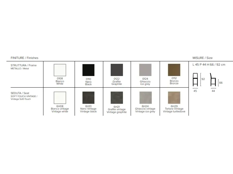 Sgabello in morbido Soft-Touch con struttura in metallo verniciato.