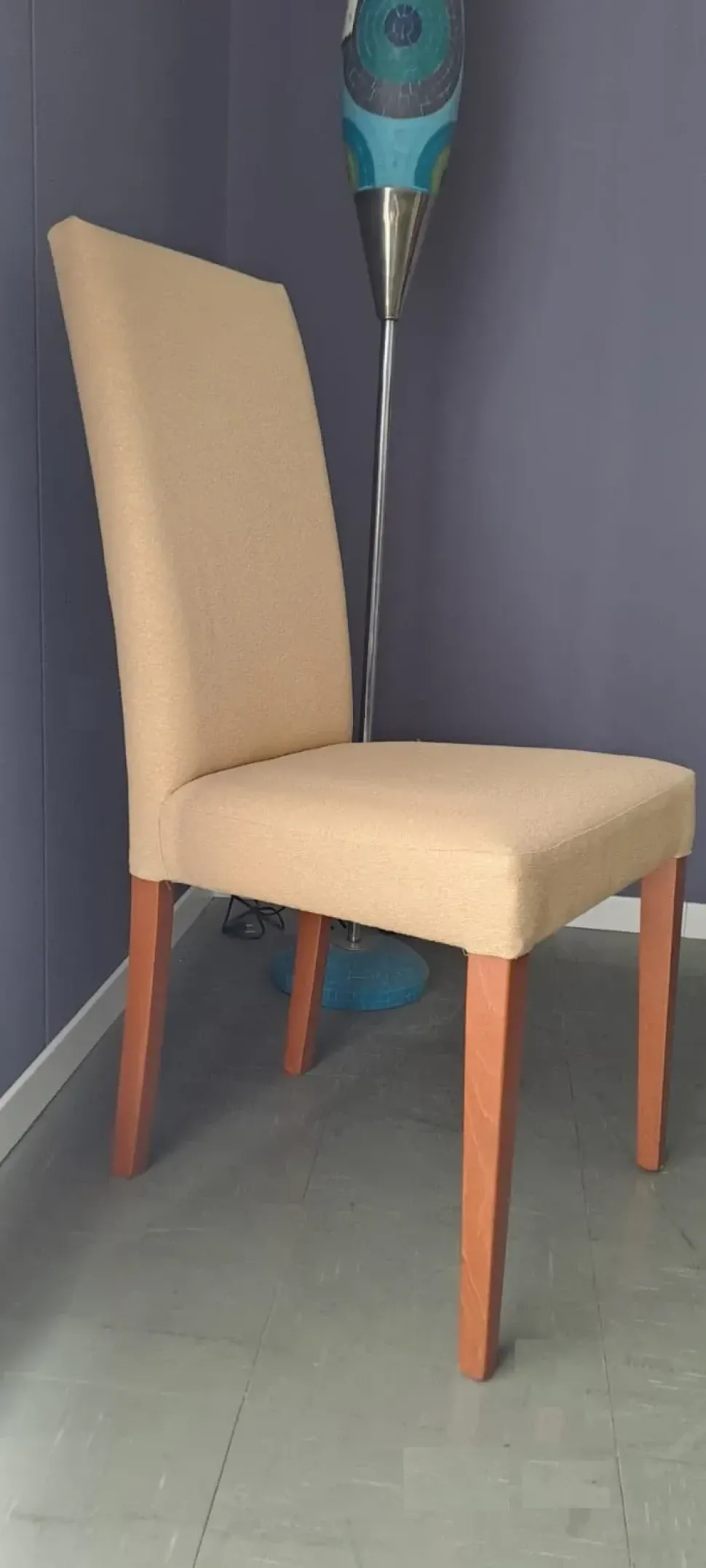 Sedia imbottita con piedi in faggio in finitura ciliegio, dimensioni : L.46 P.56 H.98