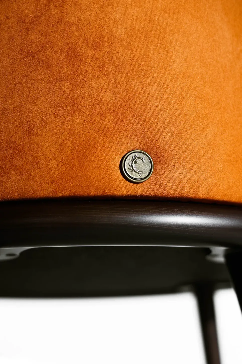 Le gambe sono in ferro conificato a freddo. La seduta e la spalliera, in legno sagomato e curvato, sono imbottite in gomma a due densità e rivestite con una lavorazione sartoriale.