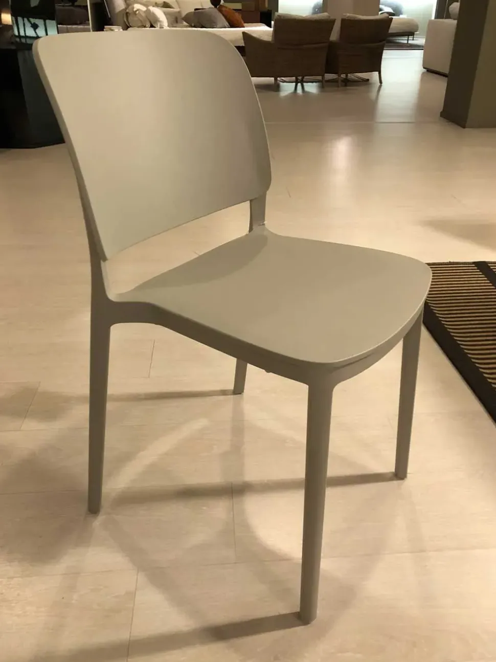 Sedia Keai impilabile, adatta ad ogni ambiente. Color Sabbia con struttura integrale in polipropilene e fibra di vetro riciclabile. Design dalle linee semplici e curate. (Qui nelle foto affianco alla sedia Keai color azzurro polvere). Dimensioni: Ingombro totale 48x54x80, seduta H46. Materiali: Struttura integrale in polipropilene e fibra di vetro riciclabile in color Sabbia.