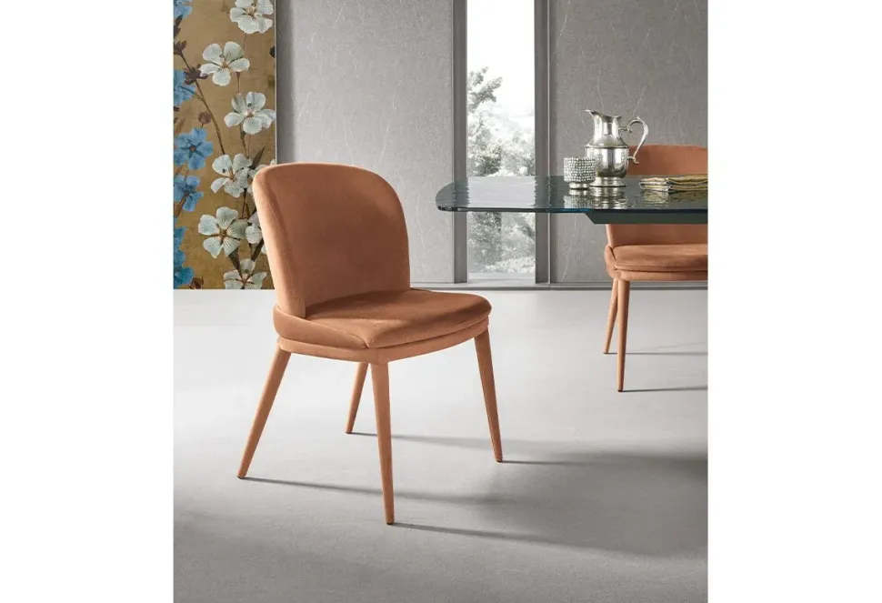 Sedia interamente rivestita in Gentle-Touch oppure in morbida microfibra effetto velluto. Disponibile in molteplici colori.