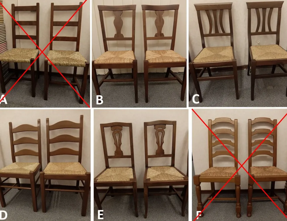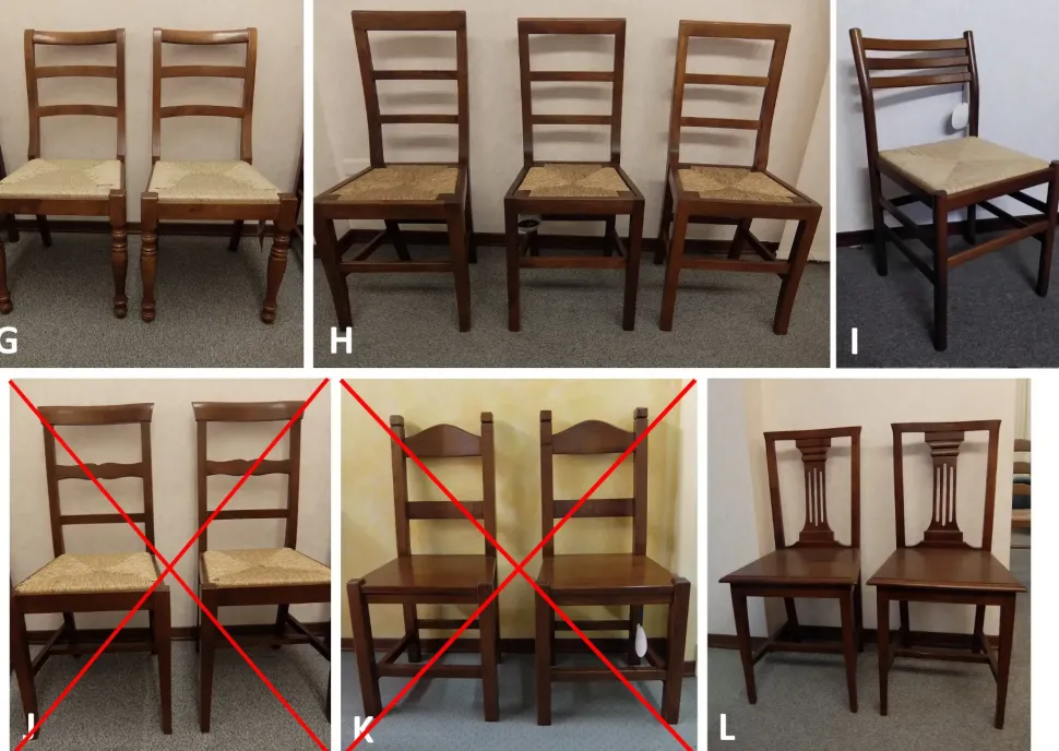 Disponiamo di circa 25 sedie tutte diverse: alcune sono uguali a coppie, altre sono singole o simili tra di loro.