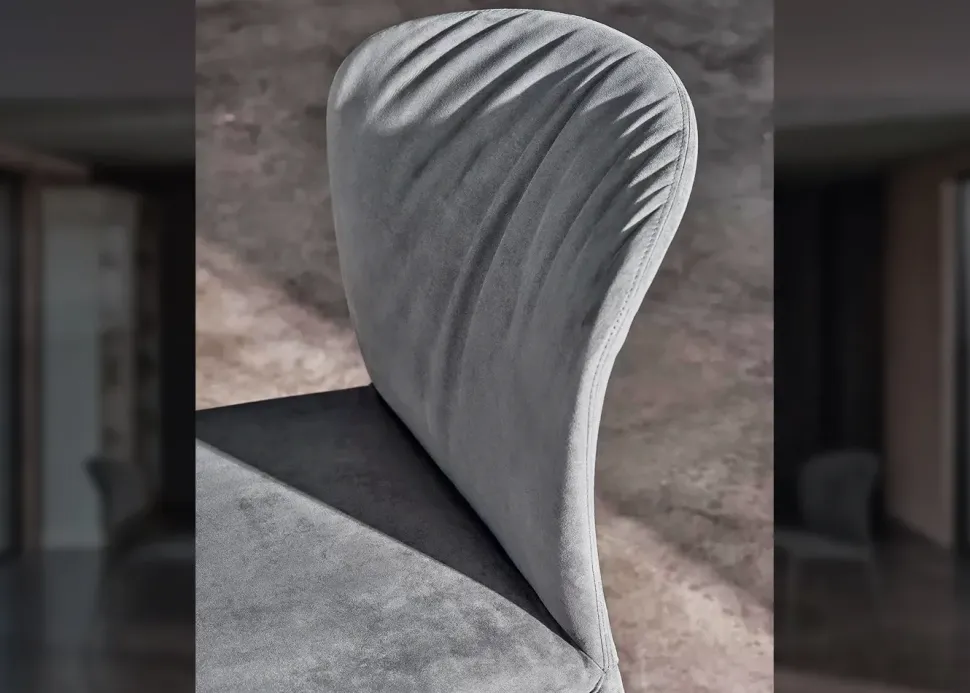 Sedia con struttura in acciaio o completamente imbottita e rivestita in pelle Ecologica Premium, tessuto Bouquet, tessuto Nordic, Pure Virgin Wool, velluto Supreme, tessuto Kvadrat Field, tessuto Kvadrat Coda e pelle Premium.