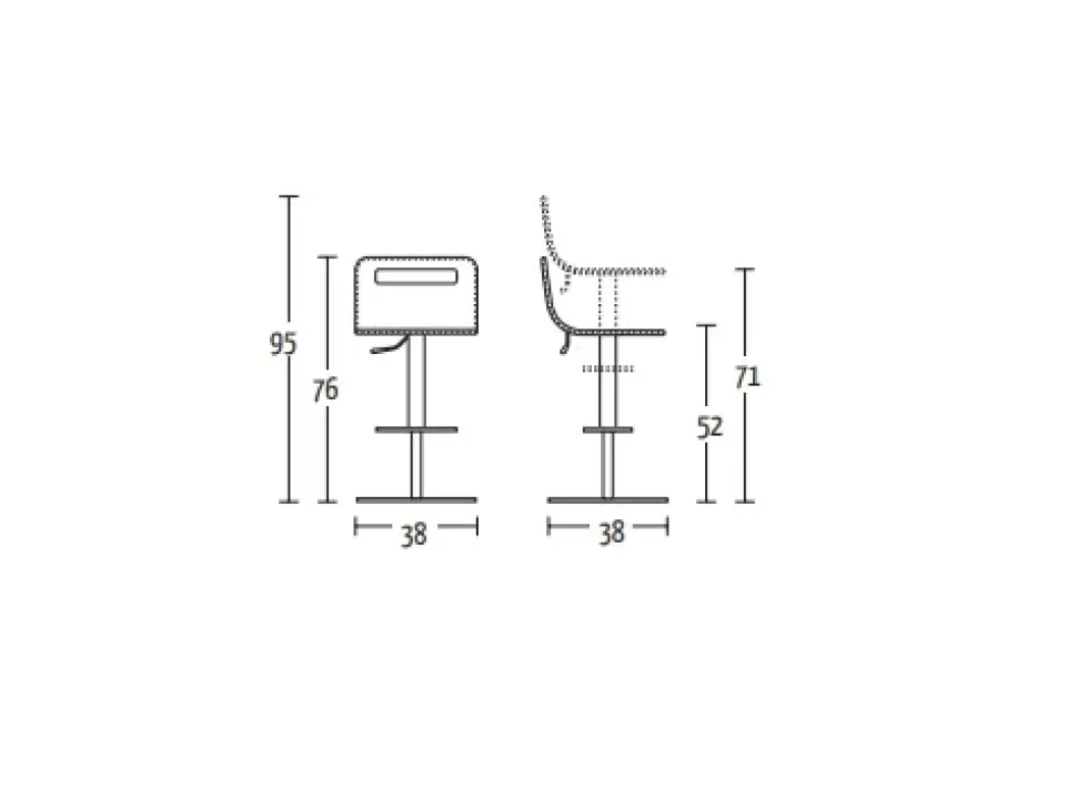 -Meccanismo a gas regolabile in altezza da cm 51 a cm 74.