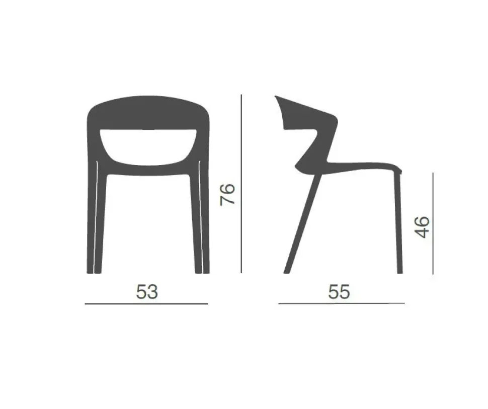 Set 4 sedie Kicca One. Sedia impilabile monoblocco, in polipropilene rinforzato fibra vetro e stampata ad iniezione con gas moulding.