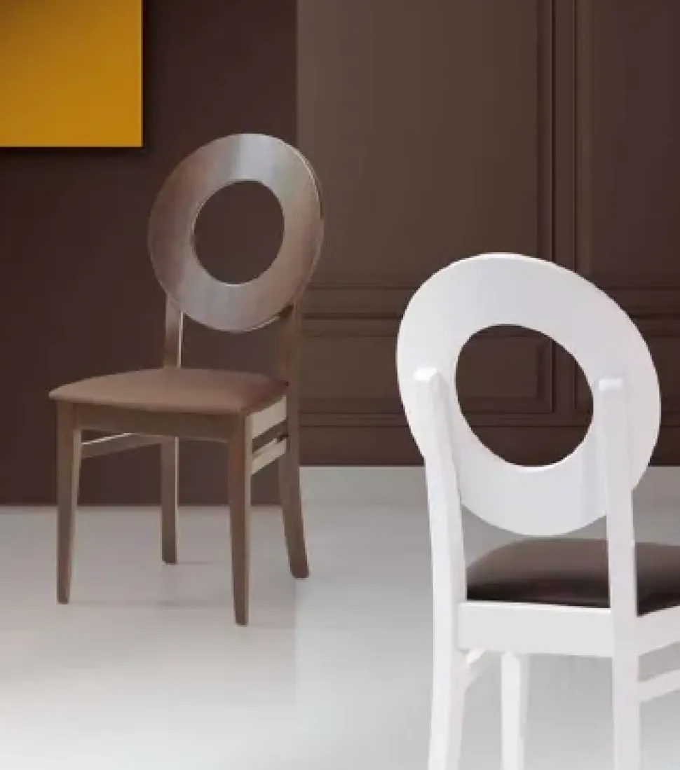 Particolarità di questa sedia è lo schienale lavorato dal design moderno