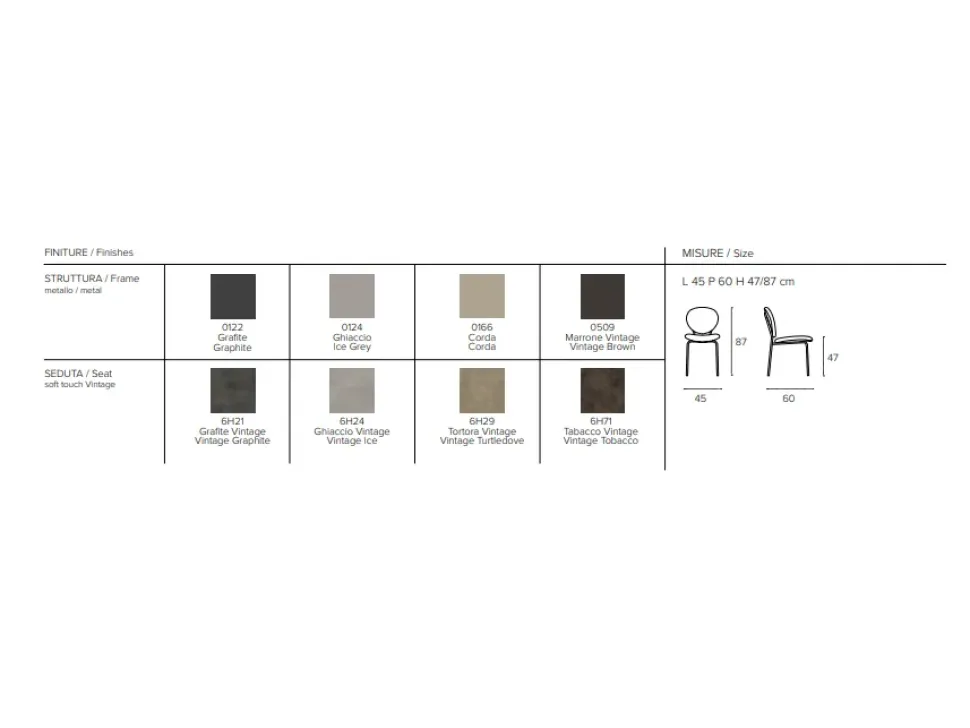 Sedia con struttura in metallo verniciato e seduta in morbido soft-touch vintage.