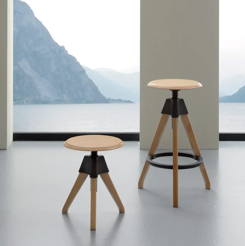 Giotto è uno sgabello con struttura in faggio naturale e particolari in polipropilene nero. Lo sgabello è regolabile in altezza. Sgabello dallo stile accattivante e soprattutto innovativo, sarà in grado di arredare in modo innovativo gli ambienti della vostra casa.