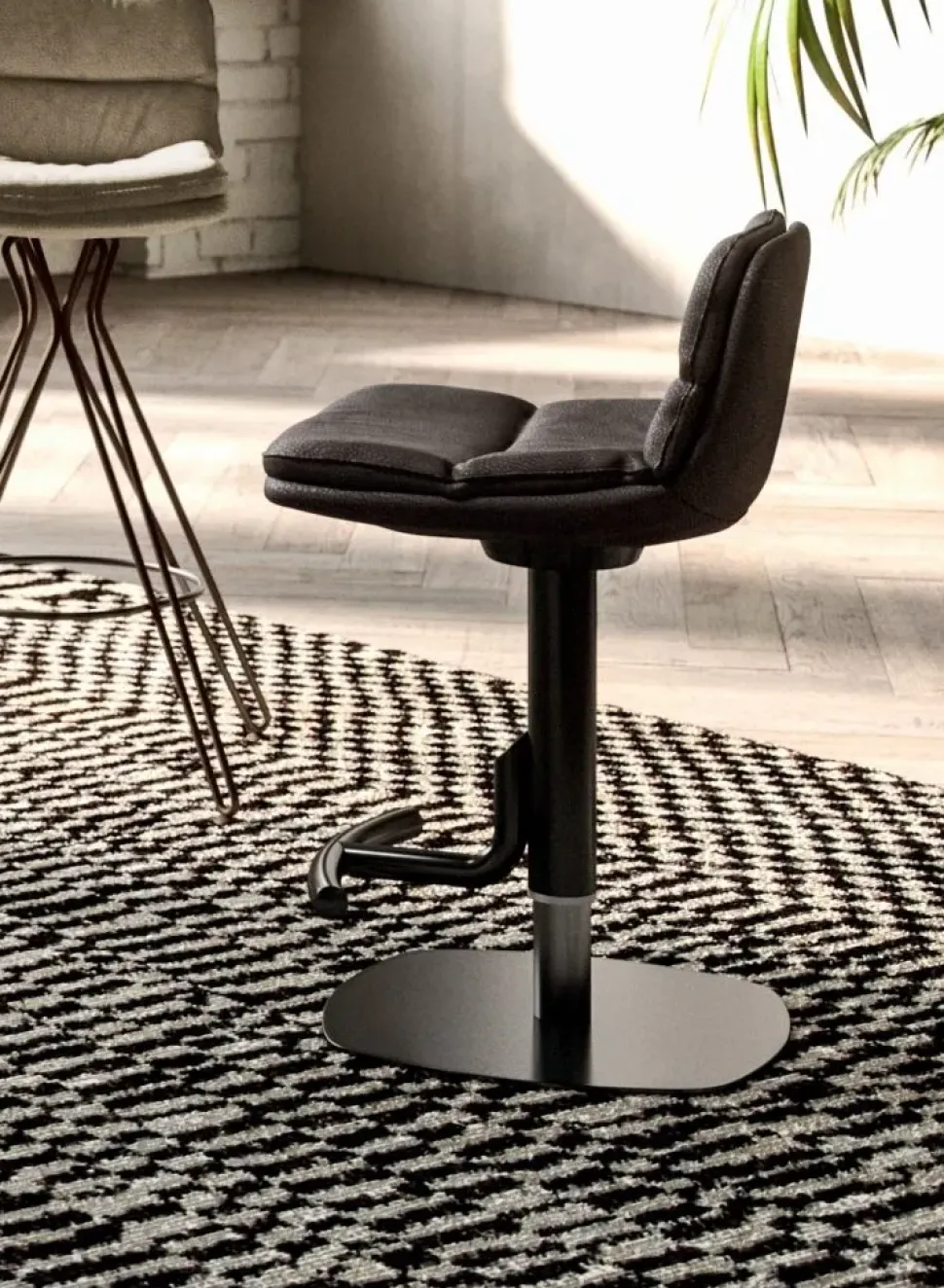 - Se desideri ottimizzare i tuoi interni, anche quelli più limitati, scegli mobili ed elementi accessori che si addicano alla forma e metratura dei locali; disponiamo di una ricca gamma di soluzioni disegnate per le necessità di ciascuno, tra cui anche sgabelli regolabile in altezza come il modello Morfeo in foto.