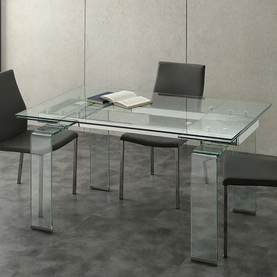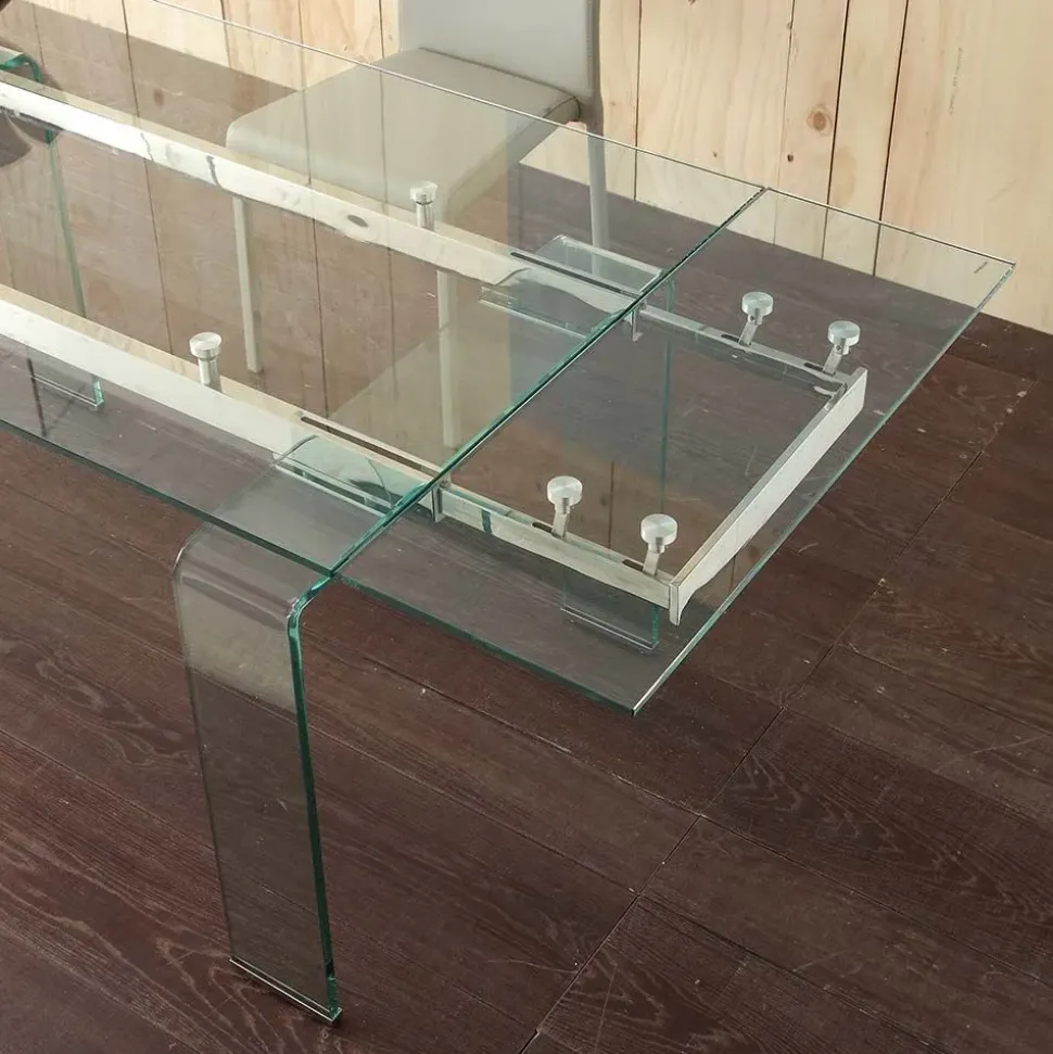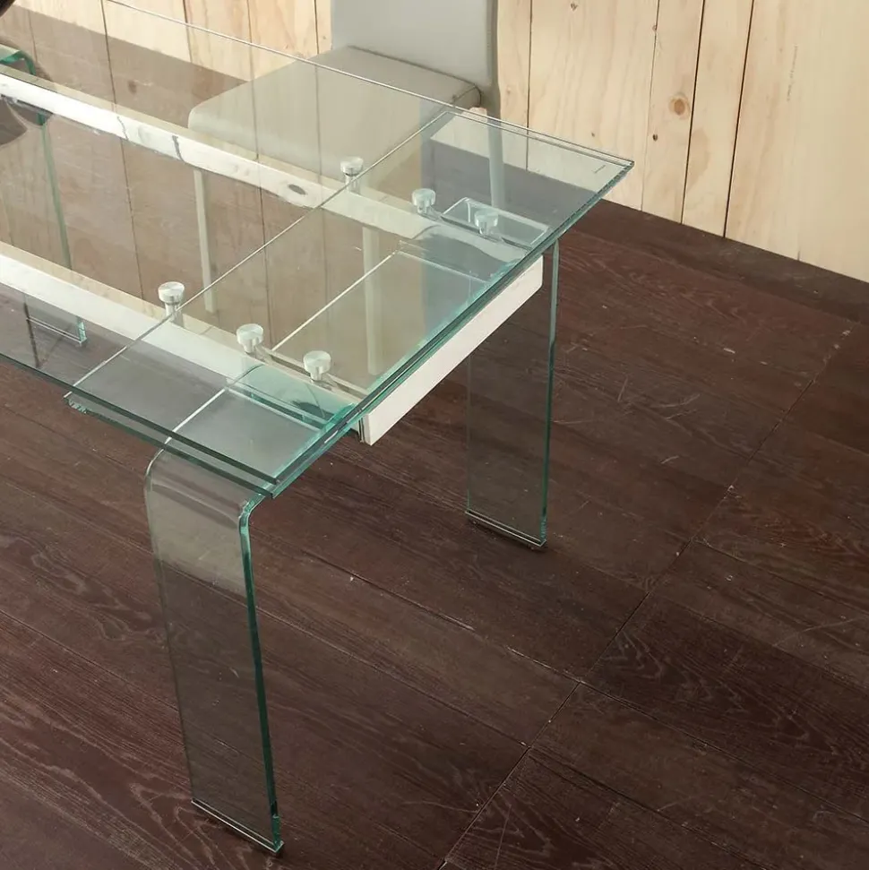 - 1. Il tavolo La Seggiola Modello 676 è un tavolo allungabile di forma rettangolare con un piano in vetro di alta qualità e un basamento a quattro gambe.