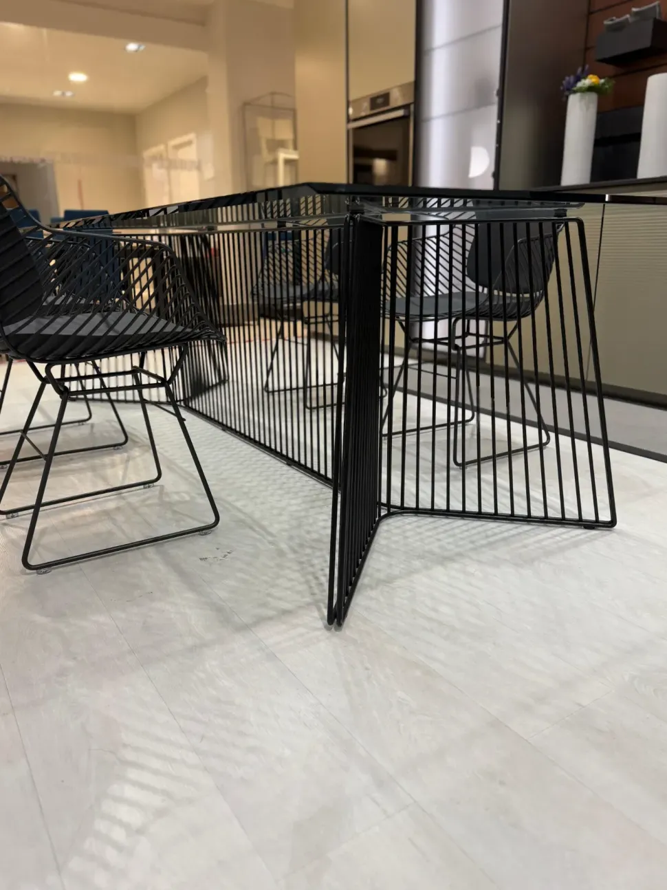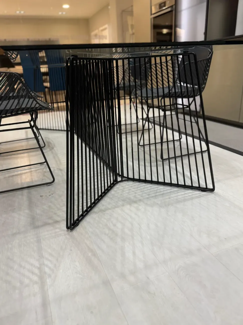 Piano vetro temperato 15 mm e base in tubi d’acciaio verniciato nero