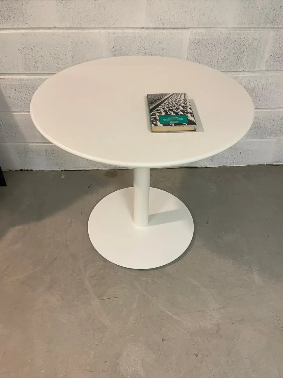 Tavolo con struttura e piano in metallo verniciato a polveri di colore bianco,