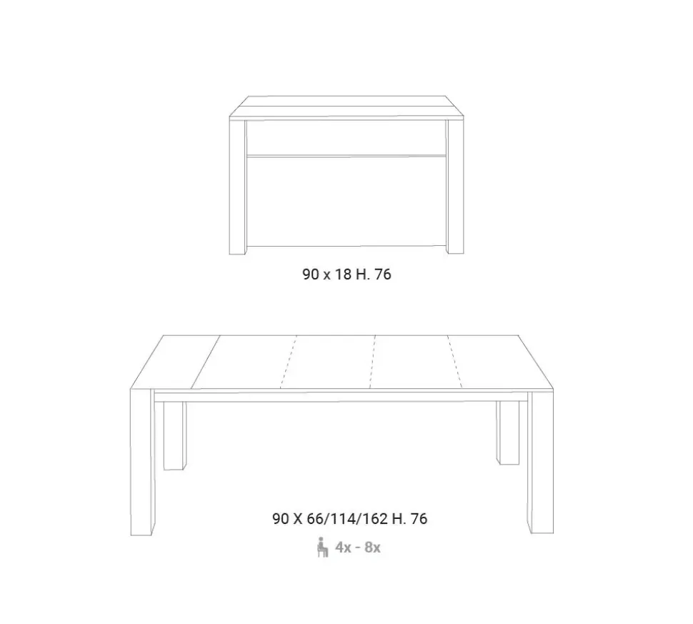 03 allunga larghezza 90 cm e profondità 162 cm