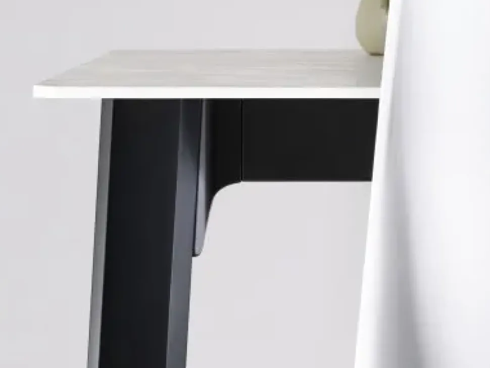 Ceramica Laminam con certificazione Kosher, i cui componenti non contengono nulla di organico, così anche le resine e colori sono totalmente di sintesi chimica. Il trattamento a circa 1200° rende le lastre completamente impermeabili. Piano in MELAMMINICO disponibile in varie finiture di colore: 8A bianco larice, 8F bianco opaco, 8G olmo chiaro, 8L grigio grafite opaco, 8P rovere crudo, 8S quercia bianco, 8U tortora. Con una maggiorazione possibilità di avere il piano in CLEAF. Il tavolo in questione misura 120 cm di lunghezza, arrivando a 160 con la prolunga; larghezza 80 cm. 4/6 Posti a sedere comodi. Altre dimensioni L.120/140cm x P.80cm + allunghe da 40cm
