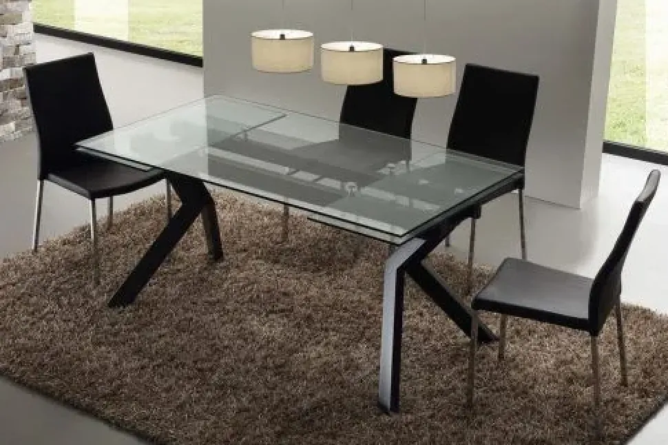 - Tavolo allungabile dal piano in vetro misura chiuso cm 160×90 , aperto cm 240.