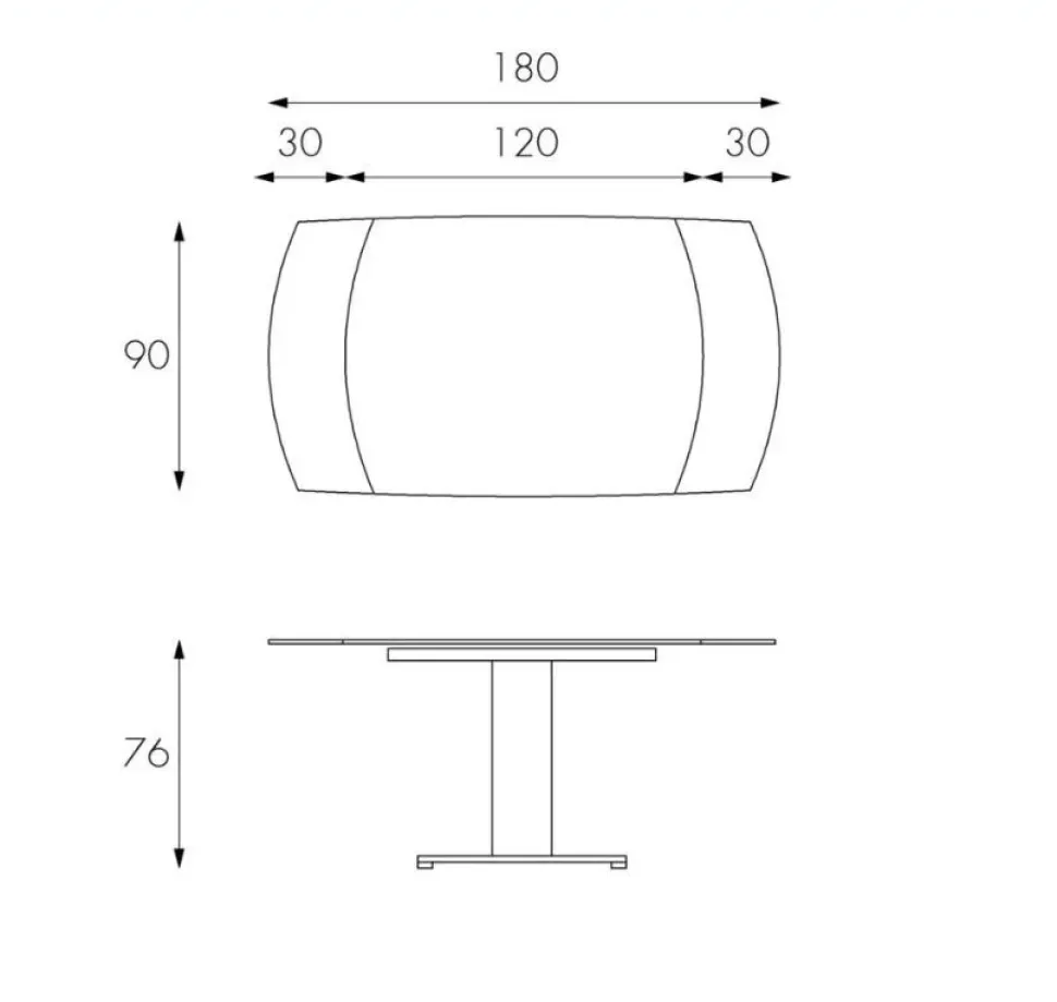 LARGHEZZA CM 120 CON 2 ALLUNGHE DA CM 30 TOTALE CM 180.