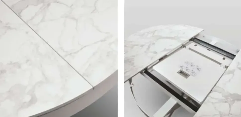 Il tavolo Rondò allungabile unisce design raffinato e funzionalità. La sua base in metallo Bianco con gambe incrociate crea un look moderno e sofisticato, perfetto per qualsiasi ambiente. Il piano rotondo è realizzato in ceramica opaca con una splendida finitura Bianco arabesco , elegante e resistente. La prolunga di 50 cm. in MDF laccata bianco consente di trasformare il tavolo in un’ampia soluzione per ospitare più persone. Misura da chiuso diametro 120 cm , altezza cm 75. Misura aperto : diametro 170 cm , altezza 75 cm . Un complemento d’arredo che si adatta facilmente a qualsiasi stile di casa, combinando estetica e praticità. Perfetto per chi cerca un tavolo allungabile di alta qualità e design unico.