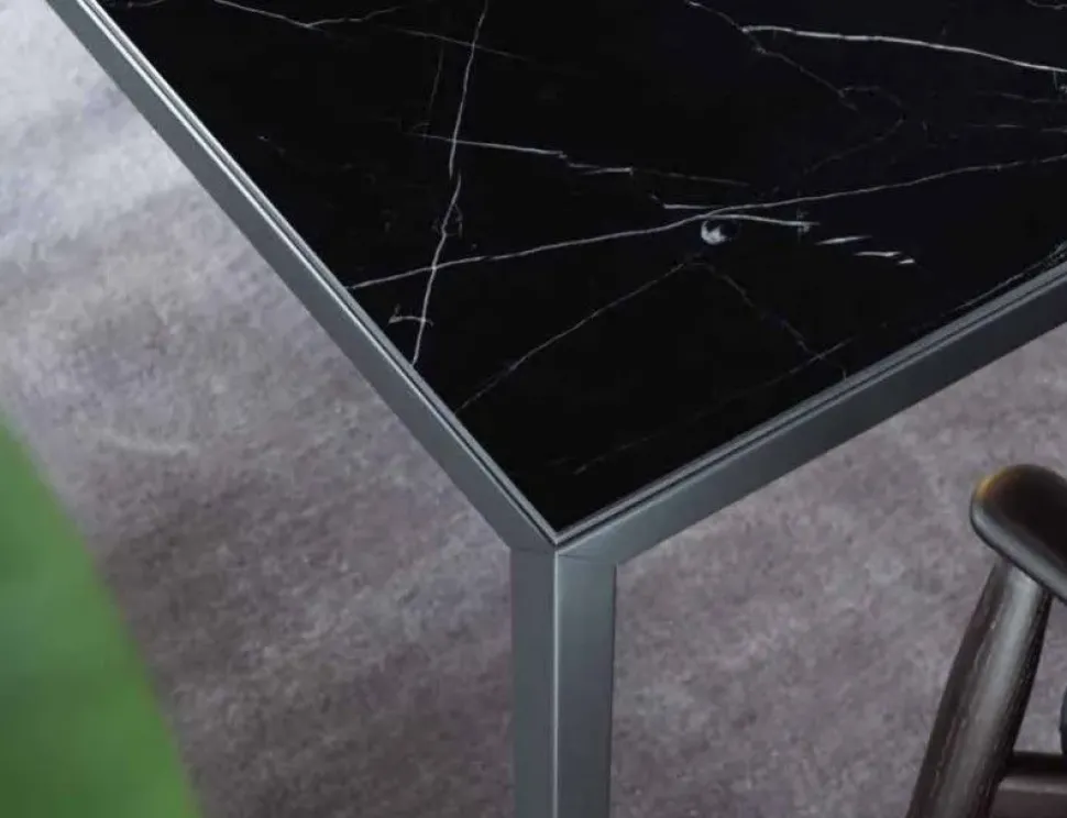 Finitura della struttura in laccato opaco color nero grafite e piano in cm 0,6 in light stone nero-