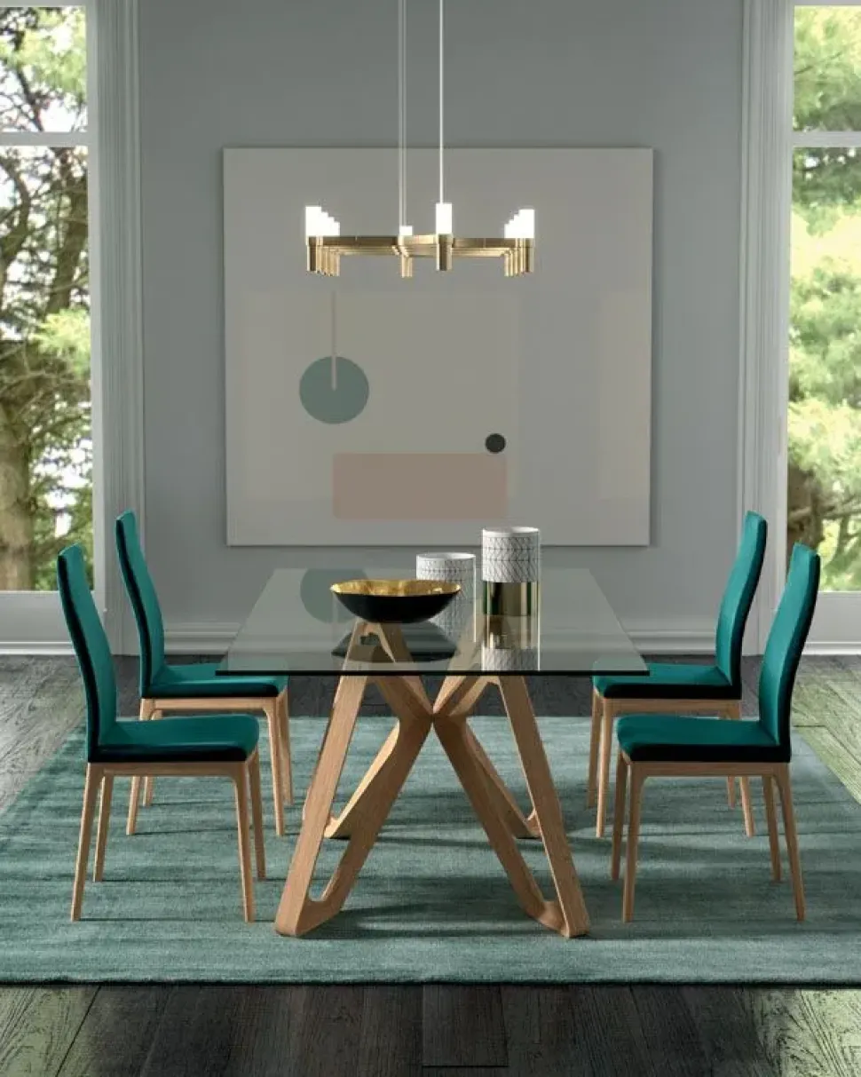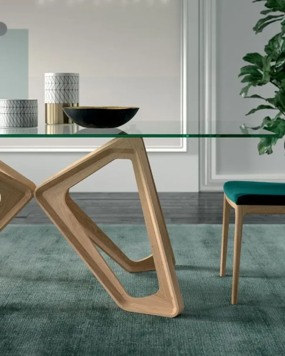 Tavolo da pranzo con base in legno massello colori a scelta.