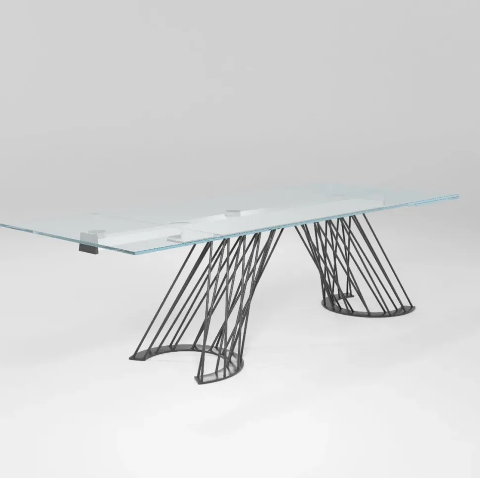 -cristallo temperato extra chiaro, allungabile (qui presentato con la base nella finitura laccato antracite);