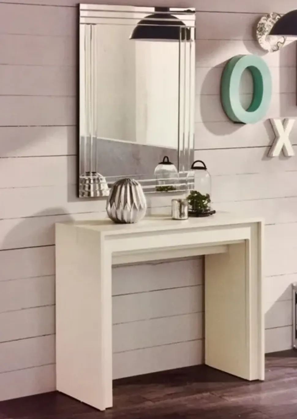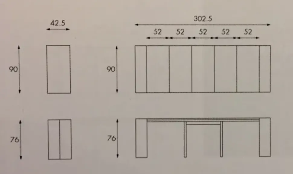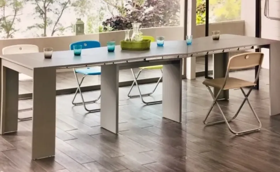 adatto ad essere posizionato in ambienti ingresso o qualsiasi altro ambiente , può avere oltre alla funzione appena descritta , anche la funzione di un comodo tavolo allungabile per tanti ospiti , una volta esteso per tutta la sua lunghezza , oppure anche quale tavolo tradizionale principale a seconda delle esigenze derivanti dal numero di persone che lo devono occupare .