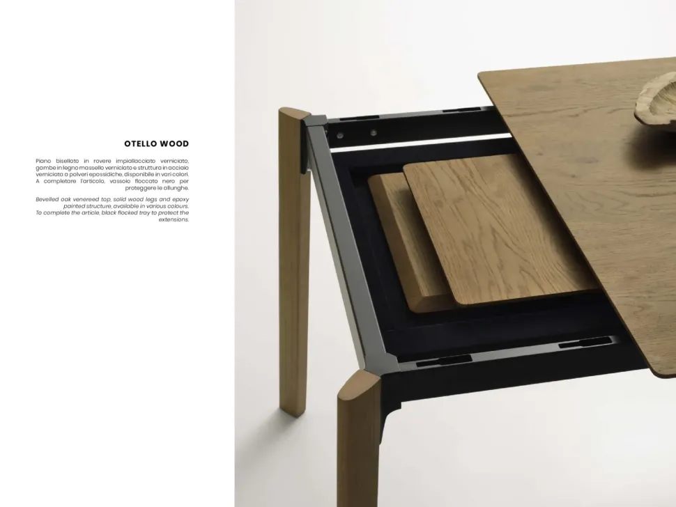- Durante la scelta dei tavoli da disporre in casa, è sempre meglio fare molta attenzione pure ai materiali con cui sono stati costruiti, poiché hanno disparate qualità di praticità ed estetica a seconda del tipo di piano: il tavolo Otello qui visibile ne comprende uno realizzato in laminato di grande effetto visivo, su cui potrai posare oggettistica d’uso quotidiano nonchè propriamente decorativo.