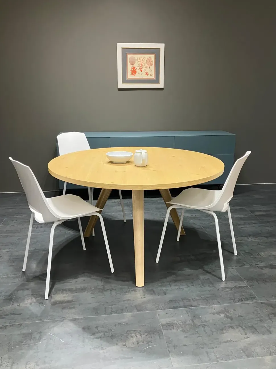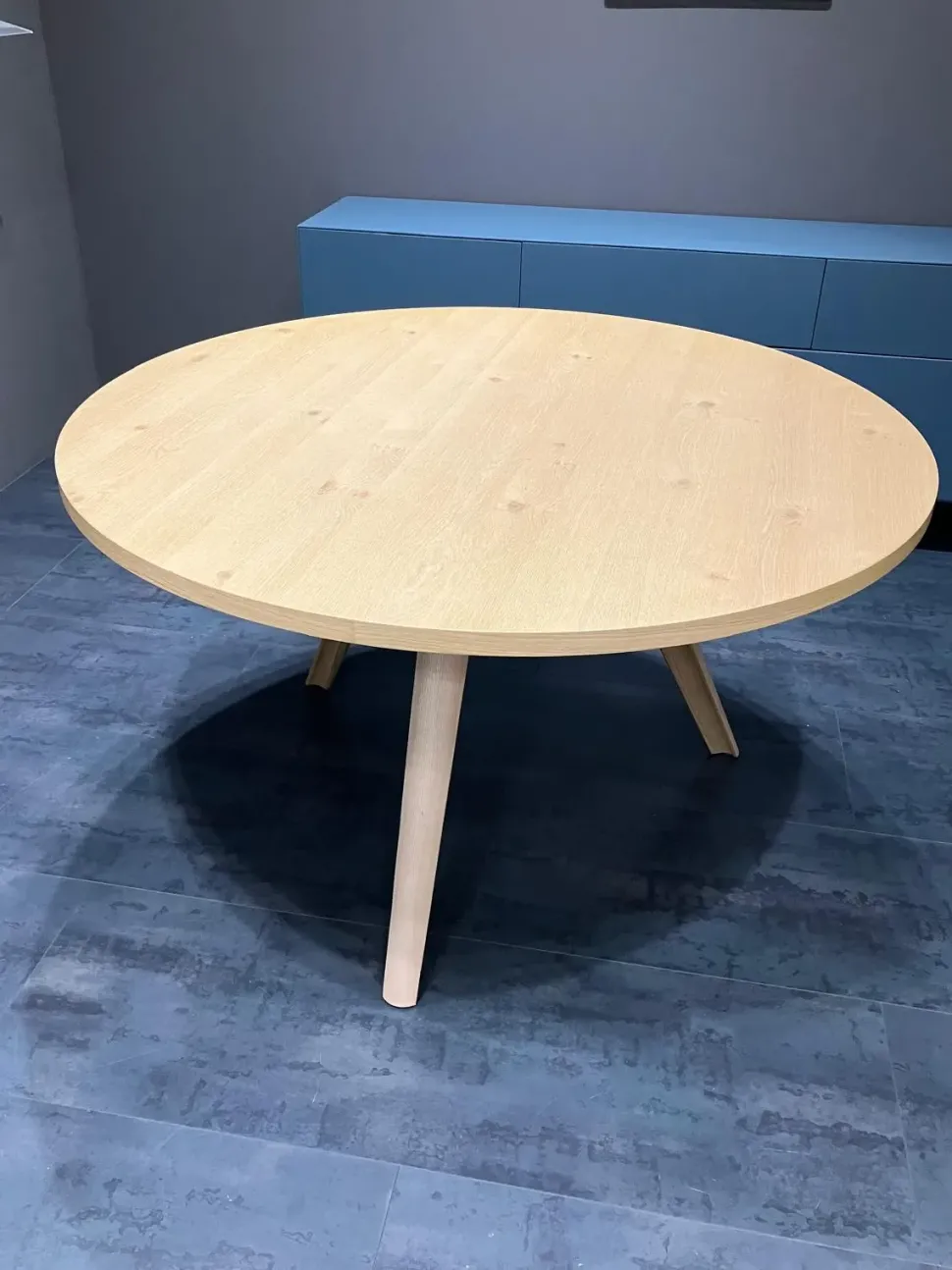 Il tavolo rotondo di Sangiacomo conferma la produzione solida e di qualità del marchio. Il cavalletto centrale a tre gambe permette una seduta comoda pur evidenziando un’estetica moderna e di Design- Il piano è in finitura Rovere nodato naturale con uno spessore di cm 3 che caratterizza la robustezza dello stesso-