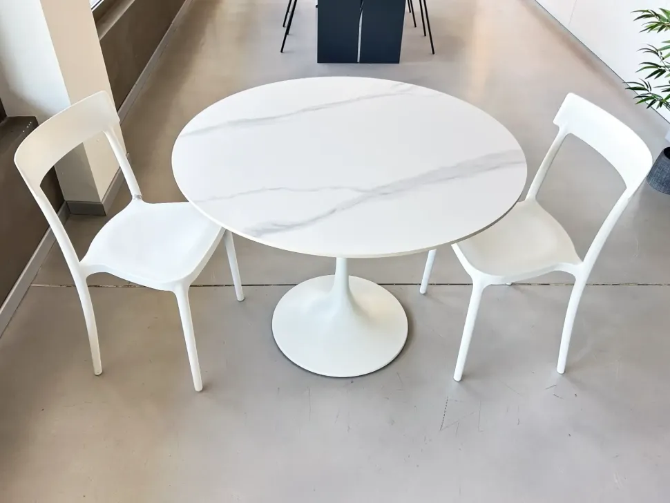 Questo tavolo rotondo conquista al primo sguardo con il suo design essenziale e sofisticato. Il piano effetto marmo regala luminosità e carattere, mentre la base centrale assicura stabilità e comfort. Ideale per chi cerca una soluzione compatta ma d impatto, si integra con naturalezza in ogni ambiente, portando con sé un tocco distintivo che non passa inosservato.