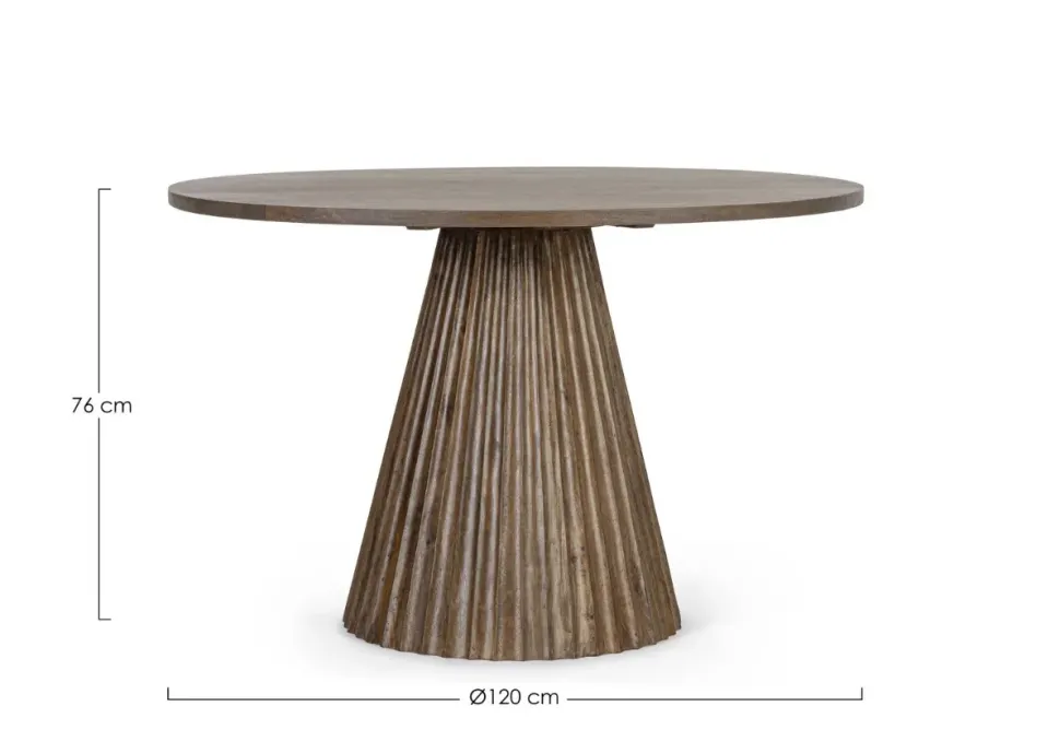 TAVOLO IN LEGNO CON BASAMENTO CANNETTATO DIAMETRO 120 PER 6 PERSONE