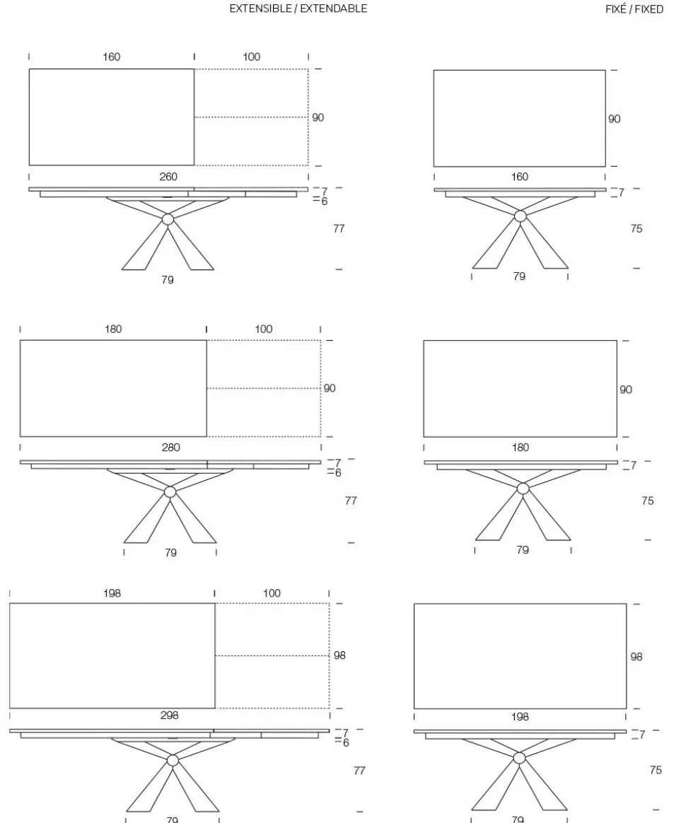 - Tipologia: rettangolari allungabili