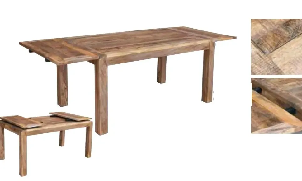 - Gli ambienti interni occorre che siano conformi alle richieste di chi li vive e gli arredi non devono assolutamente essere di intralcio, per tale ragione è tanto importante selezionarli anche a seconda delle loro dimensioni; il tavolo Rettangolare allungabile Outlet etnico qui visibile va da 161 a 190 cm in lunghezza, risultando così ideale per uno spazio di molteplici dimensioni.