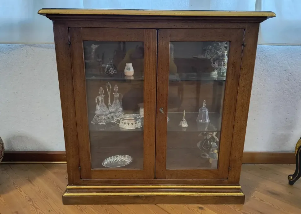 Perfetta per esporre oggetti, stoviglie, libri o collezioni preziose, questa vetrinetta unisce funzionalità e pregio estetico, diventando un pezzo unico e distintivo nella tua casa.