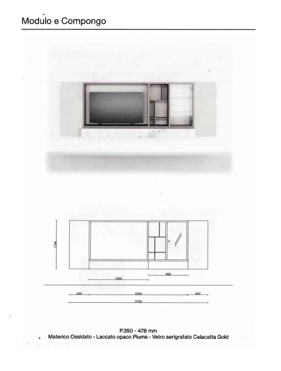 Sottotitolo: Orme Day 02: Il soggiorno completo perfetto per uno stile moderno!Elenco puntato:- Materiale laminato materico: Il modello Orme Day 02 è realizzato con un materiale laminato di alta qualità, che garantisce resistenza e durata nel tempo. Inoltre, il suo aspetto materico conferisce un tocco di eleganza e raffinatezza all’ambiente.- Stile moderno: Se sei alla ricerca di un soggiorno completo dal design contemporaneo, il modello Orme Day 02 è la scelta ideale. Le sue linee pulite e minimaliste si adattano perfettamente a qualsiasi tipo di arredamento moderno, conferendo un’atmosfera di freschezza e modernità alla tua casa.- Ampia larghezza: Con una larghezza che va da 301 a 350 cm, il soggiorno completo Orme Day 02 offre ampio spazio per organizzare e sistemare tutti i tuoi oggetti. Avrai a disposizione numerosi ripiani e vani contenitori per mantenere l’ordine e avere tutto a portata di mano.- Spese di trasporto incluse: Acquistando il soggiorno completo Orme Day 02, potrai godere del vantaggio delle spese di trasporto incluse a livello nazionale (escluso le isole). Questo ti permetterà di risparmiare ulteriormente e di ricevere comodamente il tuo nuovo arredamento direttamente a casa tua.- Posizionamento sospeso e maniglia senza maniglia: Il modello Orme Day 02 presenta un posizionamento sospeso, che conferisce un effetto di leggerezza e modernità all’arredamento. Inoltre, la maniglia senza maniglia aggiunge un tocco di eleganza e minimalismo al soggiorno completo, rendendolo ancora più accattivante visivamente.