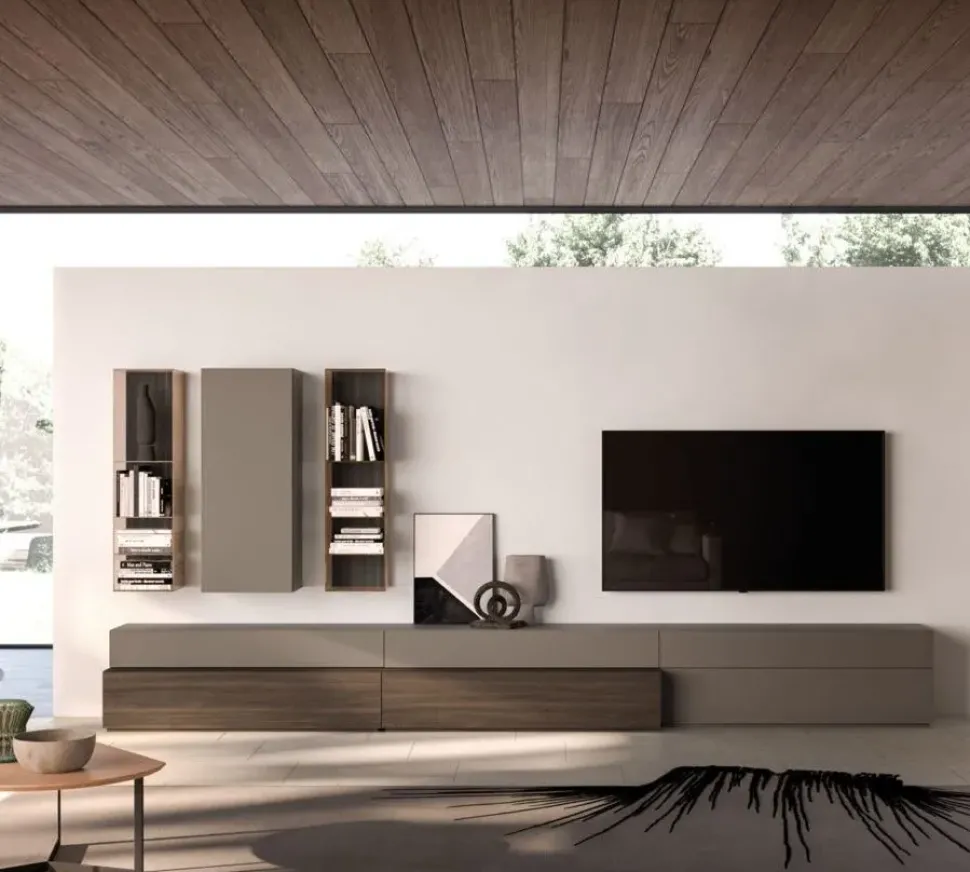 Dai forma al tuo soggiorno con una spazioso composizione completa di tutto, in grado di garantirti tutta la funzionalità di un mobile a terra.