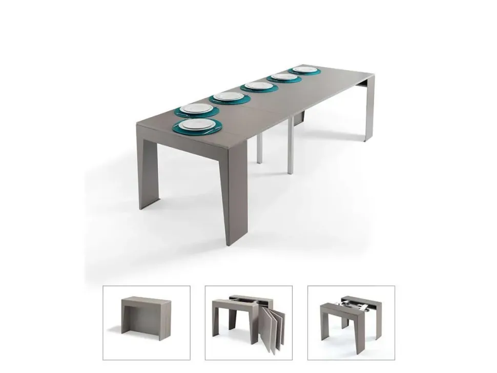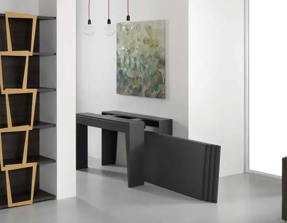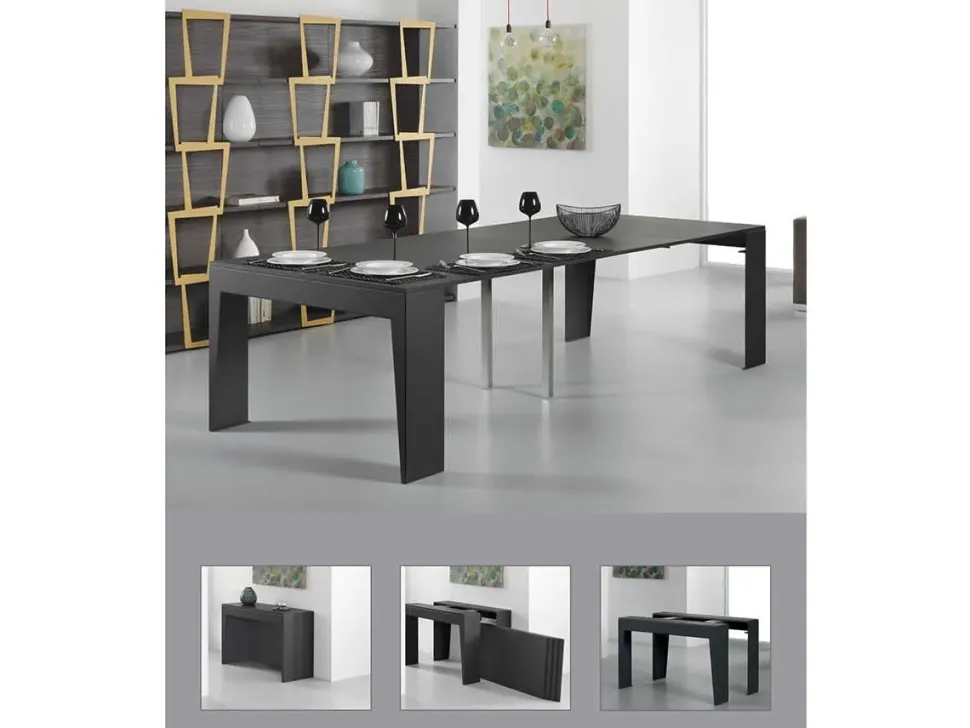 Tavolo-Consolle allungabile con struttura in lamina d’acciaio verniciata.