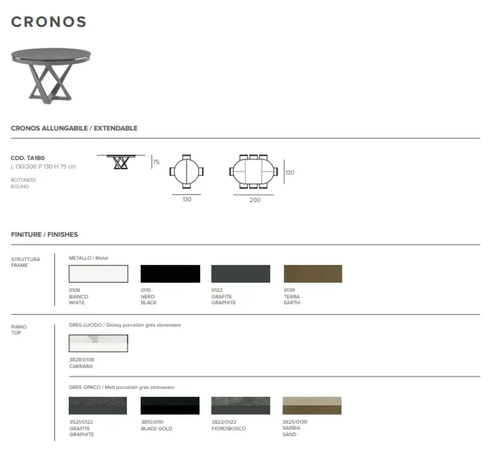 Specifiche tecniche del tavolo Cronos