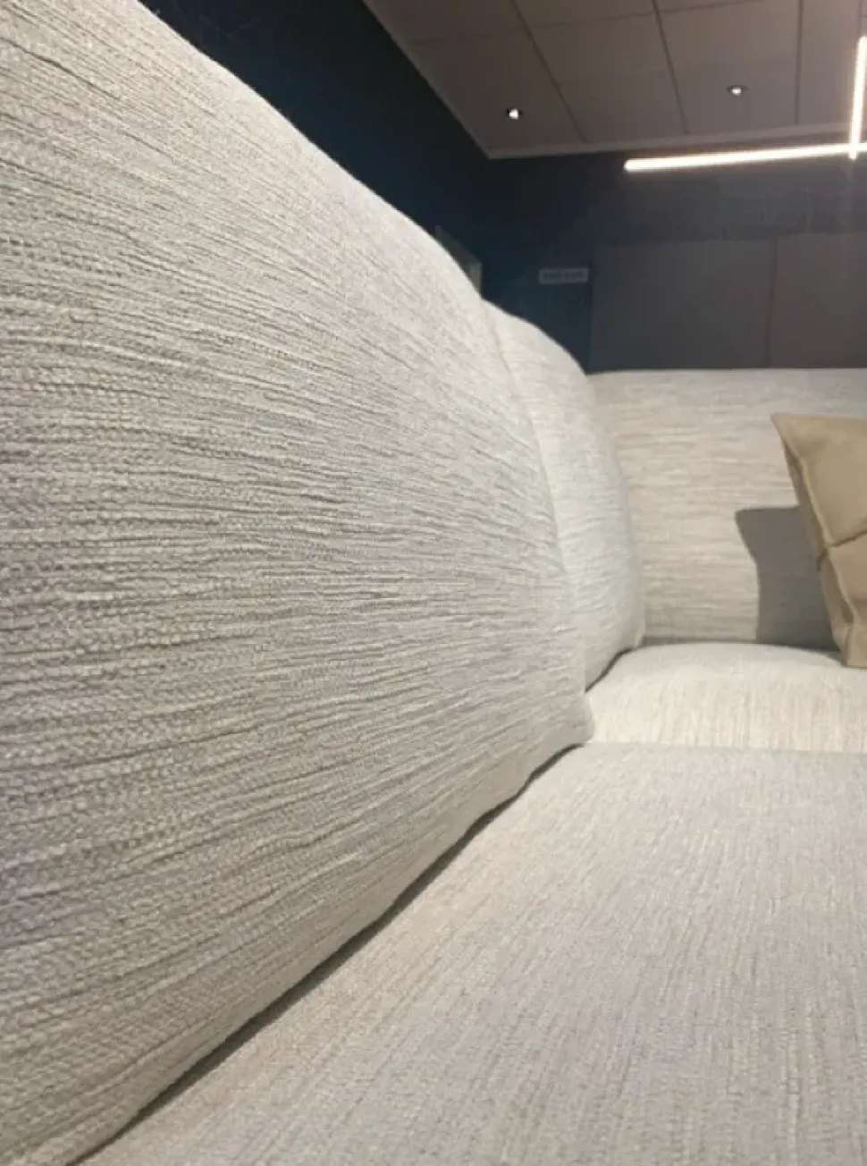 Imbottito dalla linea elegante sottolineata dal particolare taglio dei braccioli.
