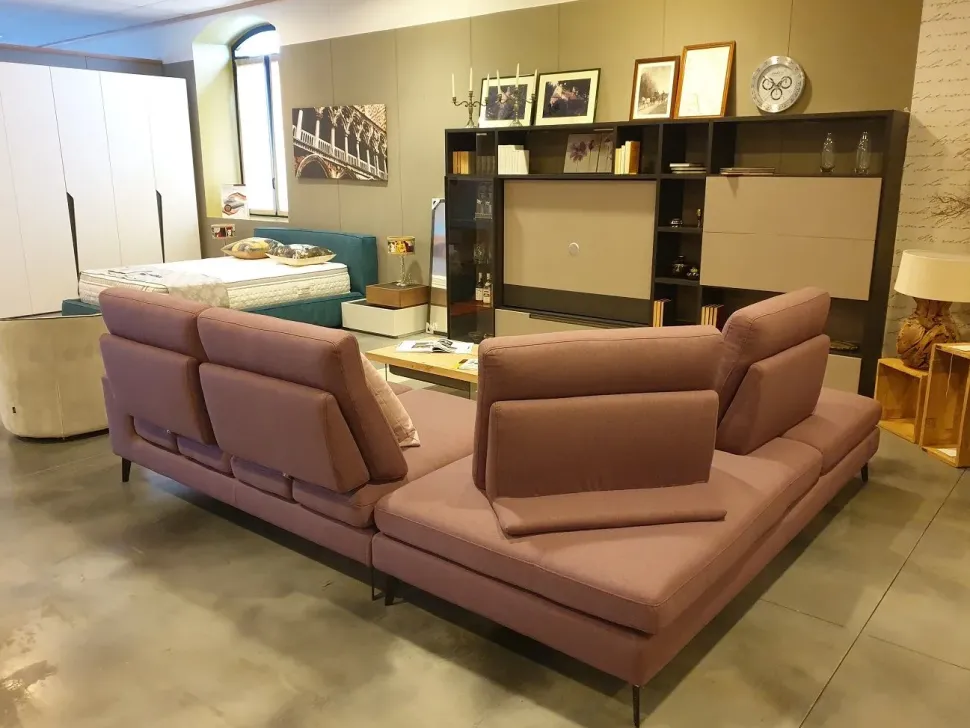 Divano in tessuto , grazie al particolare meccanismo traslante, gli schienali modificano la profondità delle sedute.