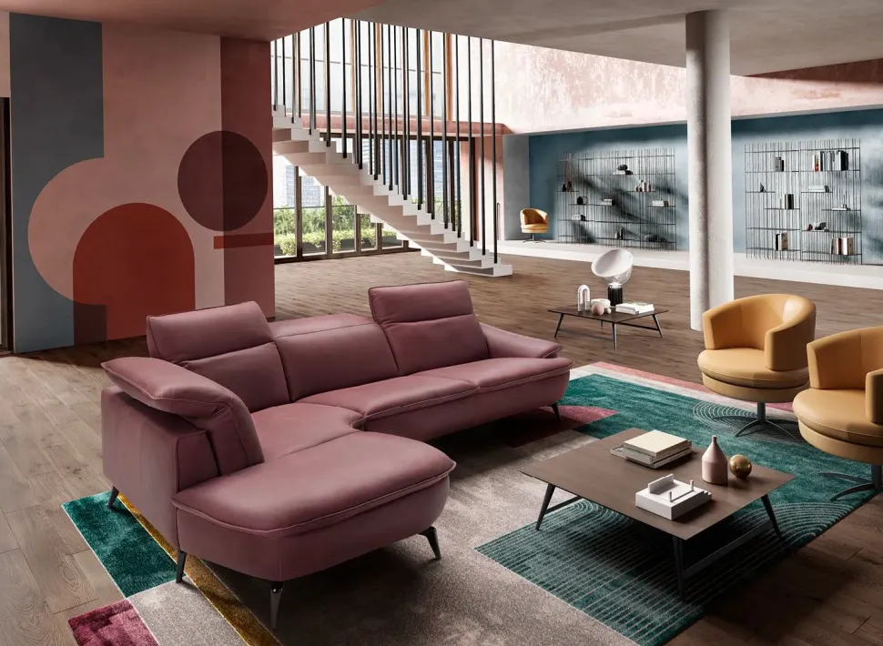 - Con il fine di organizzare al meglio lo spazio nel living, bisogna scegliere gli arredi a seconda di forma e metratura dei locali, selezionando quindi anche il tipo di imbottito che fa al caso tuo tra divani, poltrone, divani letto e molto altro; il modello visibile in foto appartiene alla collezione di divani angolari di grande qualità firmati dal marchio.