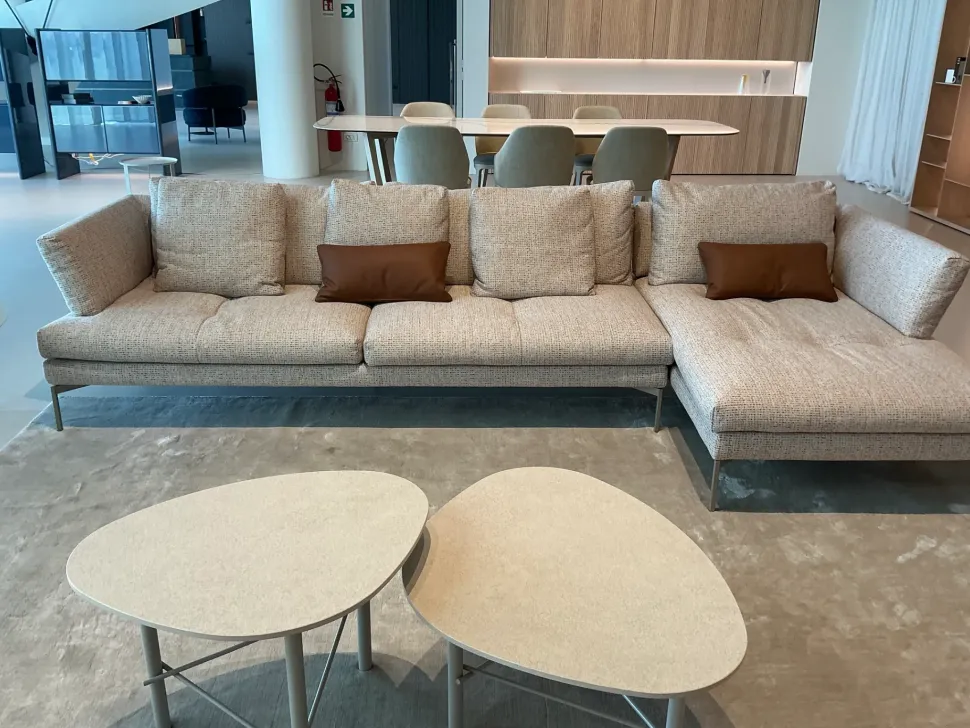 Divano componibile di BONALDO con penisola e tavolino. Composizione divisibile L. 352 P. 152